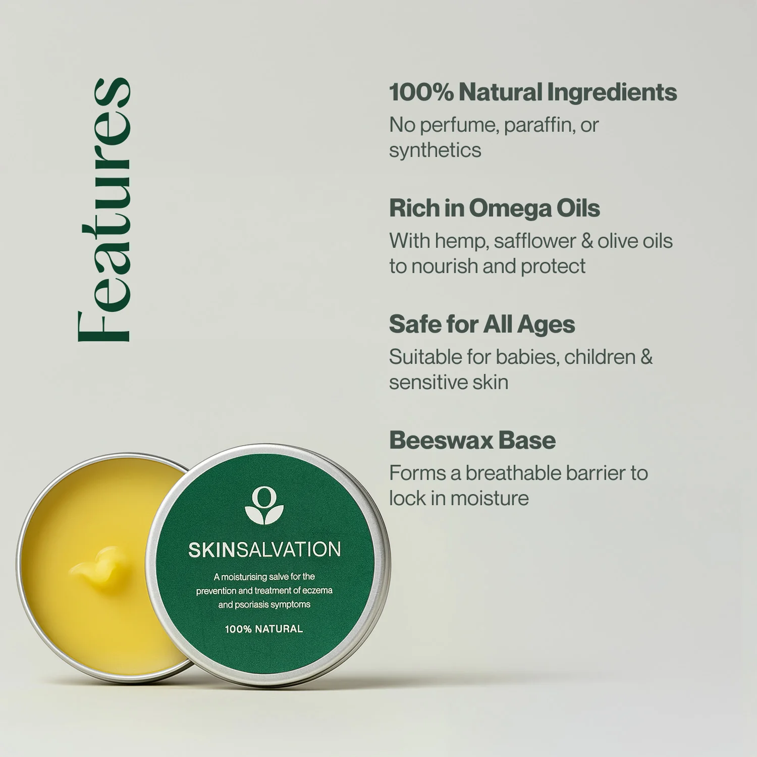Skin Salvation is an award-winning, all-natural barrier balm for the prevention and treatment of the symptoms of eczema.